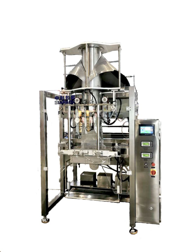 Integruota su daugiafunkcine dozavimo sistema ZL serijos vertikalių maišelių formavimo pildymo pakavimo mašina tinka įvairiems produktams pakuoti; pavyzdžiui, pūstas maistas, krevečių suktinukai, žemės riešutai, kukurūzų spragėsiai, kukurūzų miltai, džiovinti vaisiai, sėklos, smulkūs gaminiai, kukuliai, daržovės, vaisiai ir cukrus ir kt. kurios forma yra ritinėlis, griežinėliai ir granulės, taip pat plačiai naudojami chemijos ir maisto pramonėje. , farmacijos, sėklų ir kitose pramonės srityse.