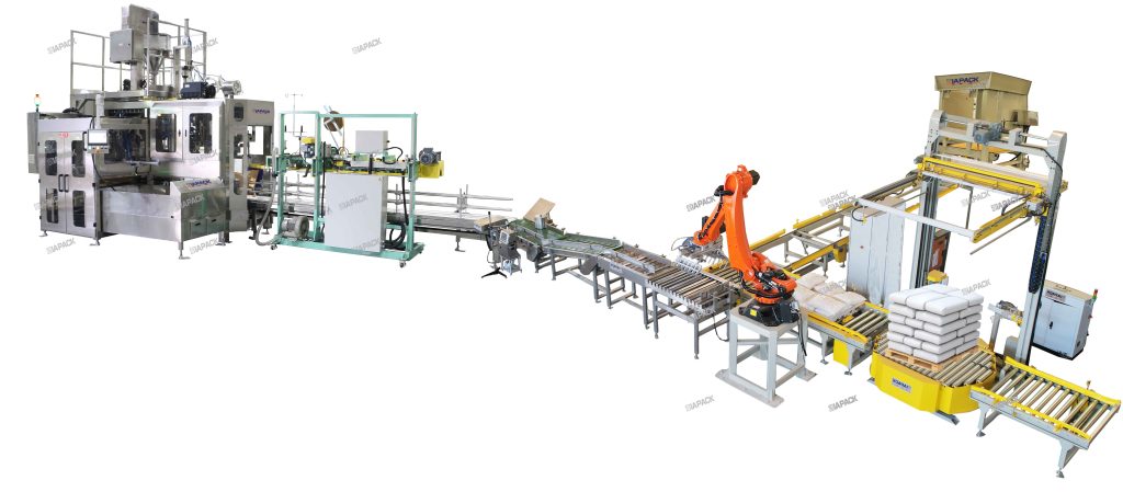 10-25kg pakuotė, kurios talpa 1000 pakuočių / h (pagal skirtingą maišą, žaliava)