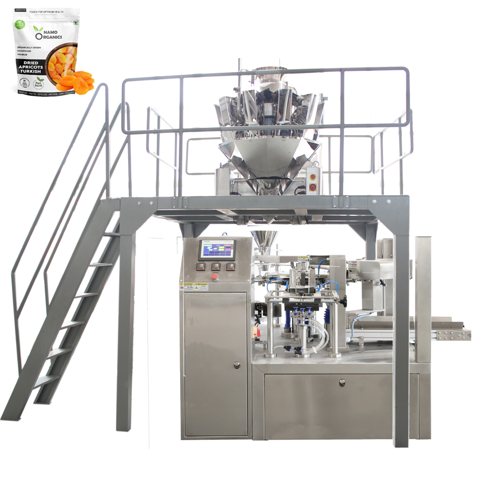 Rotacinių maišų pakavimo mašina su skirtingu dozavimu (pvz., daugiakampis svoris, sraigto užpildas, skystas užpildas ir tt) gali būti tinkamas automatiniam granulių, miltelių, skysčio, pastos ir tt pakavimui.