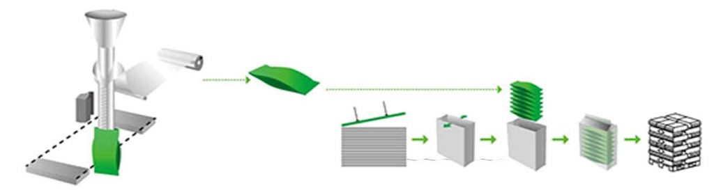 - Automatinė konfektuojamo pieno supakavimo sistema, didelis gamybos efektyvumas.