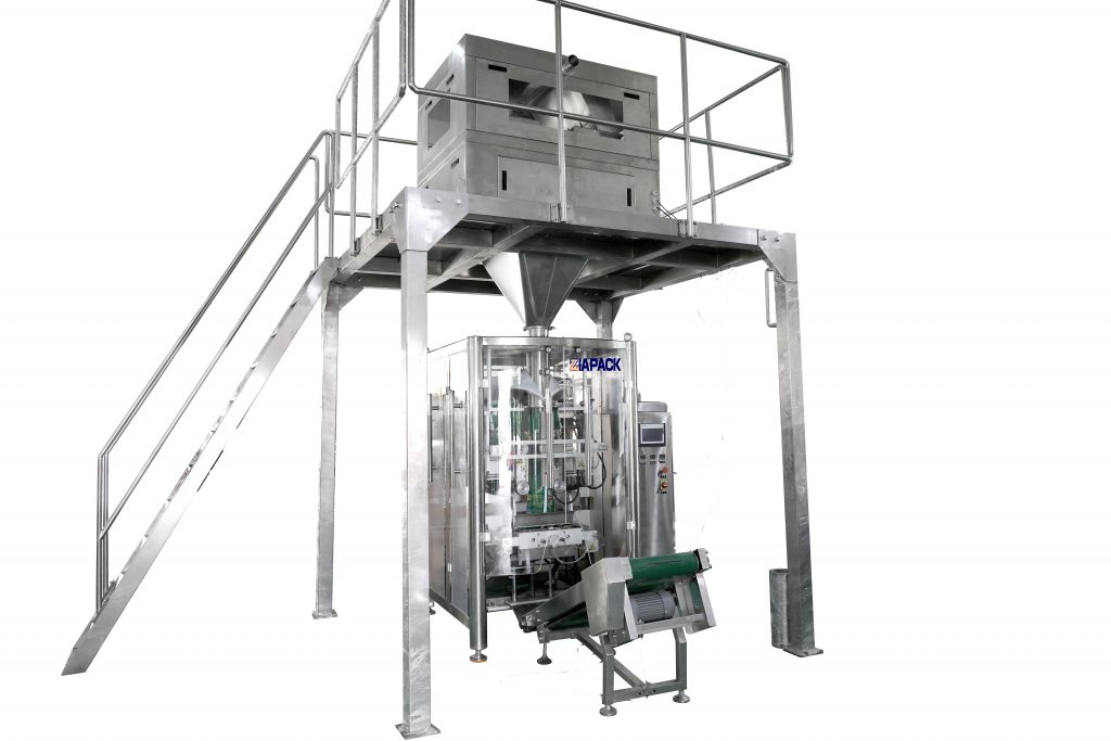 Šiame mašinos bloke yra vienas komplektas ZL720 vertikalių maišų formavimo užpildymo sandarinimo mašina ir vienas ZLS-6 šešių kaušų svėrimo mašinos komplektas, vienas DT3 vertikalaus lifto ir išvesties konvejerio aparatas. Visas mašinos blokas gali pasiekti automatinį maišelių gaminimą, produktų svėrimą, produktų užpildymą. sandarinimas ir datos kodavimas. Plačiai naudojamas pakuojant lentjuostes, ploviklio miltelius, ryžius, pupeles ir kitus granuliuotus produktus.