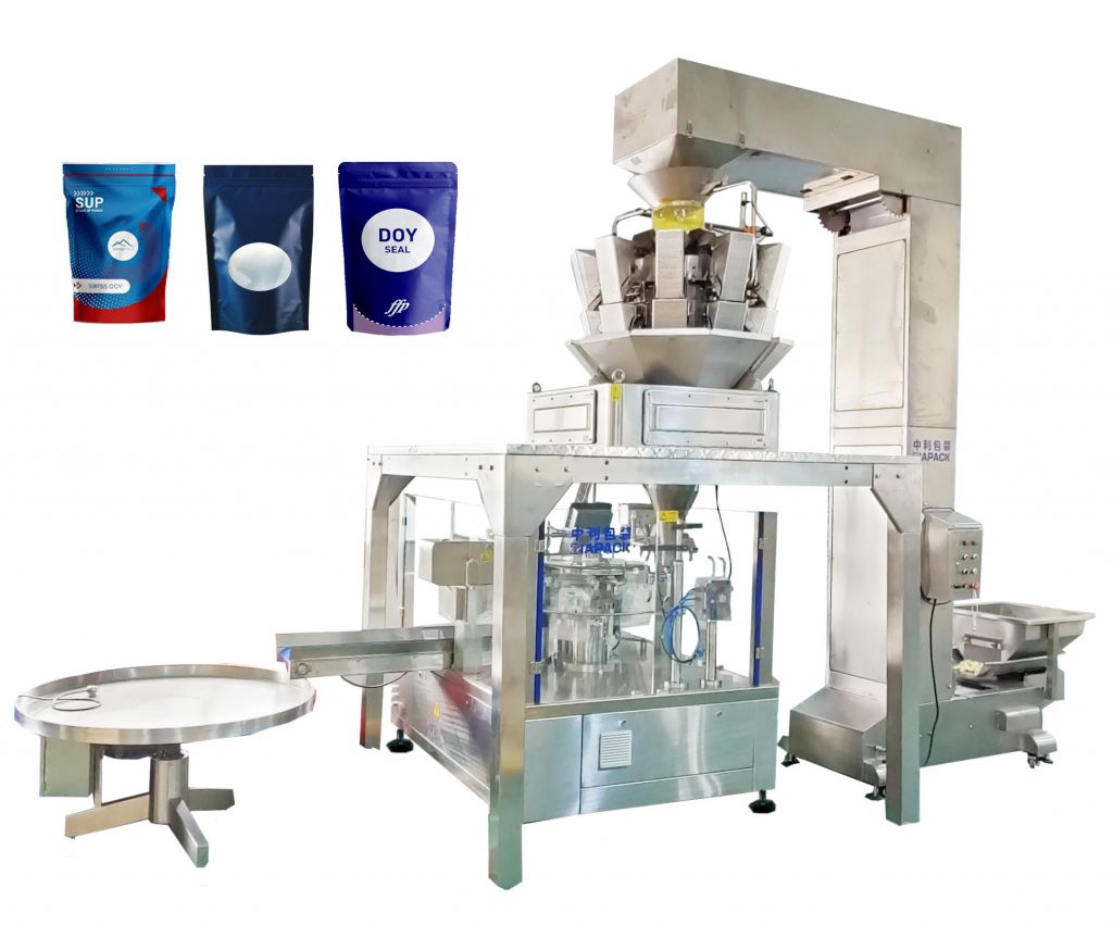Iš anksto pagamintas maišelių užpildymo ir sandarinimo staklės, sudarytos iš 8 efektyvumo ir stabilumo darbo stočių, pabrėžia standaus krepšio, užtrauktuko maišelio, purkštuko maišo paketą ir įvairias iš anksto pagamintus maišelius. Bendradarbiaujama su skirtingomis dozavimo sistemomis (derintuvais / linijiniu svoriu / sraigto / stūmoklio užpildu) ir automatiniais kėlimo konvejeriais, plačiai naudojamas granulėms, skysčiui ir milteliams.